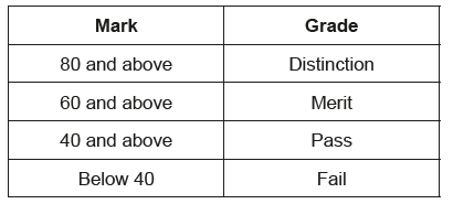 The grade boundaries for the individual grades are shown below: